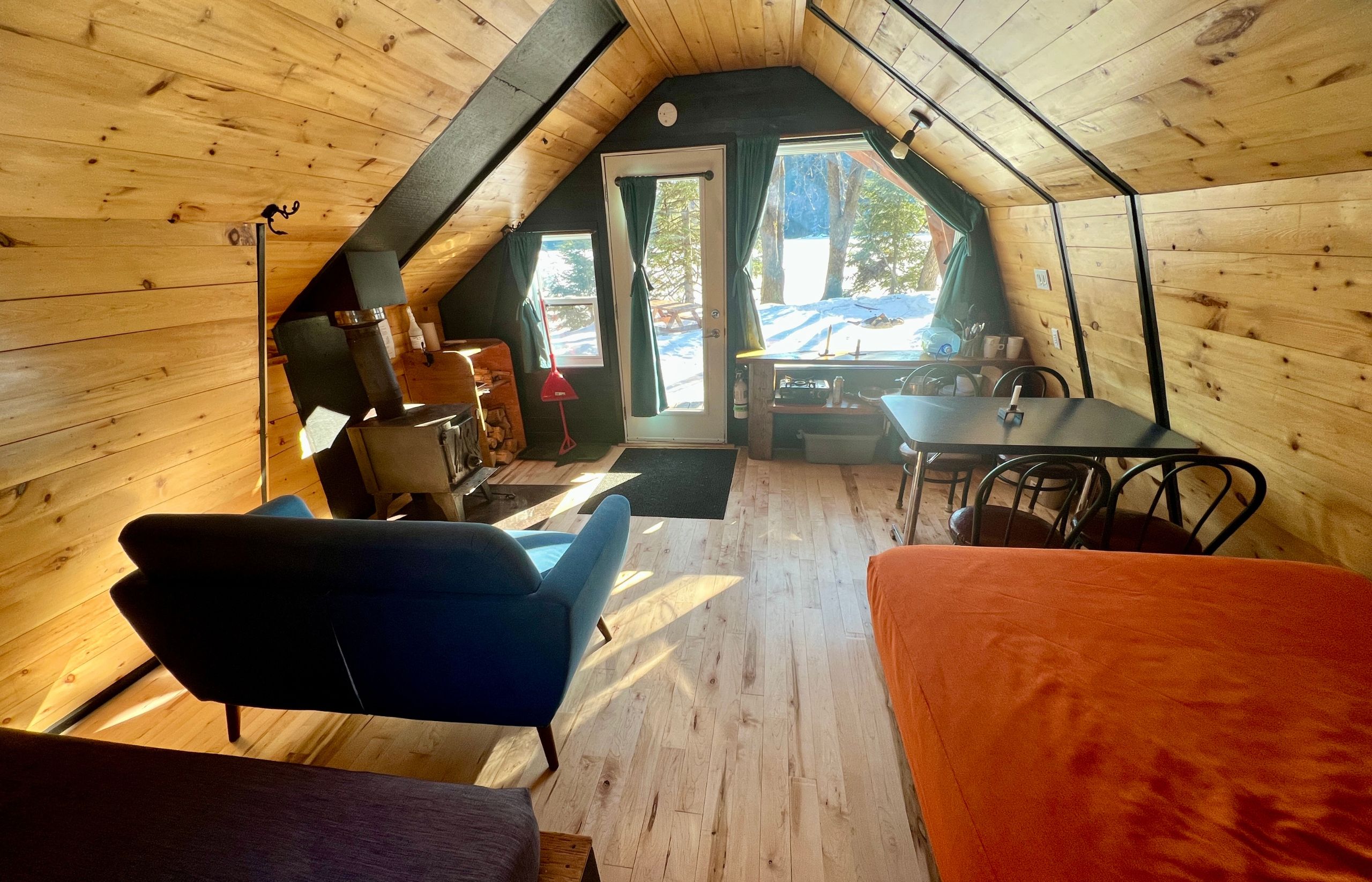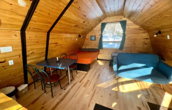 Ce sont de petits refuges pouvant accueillir un maximum de quatre personnes, sans électricité ni eau courante. Nous fournissons des bougies pour vous éclairer. Il y a un lit double et deux lits simples. Les oreillers et taies d’oreiller sont fournis, il y a aussi une table et quatre chaises. Vous devez apporter votre literie (sac de couchage ou draps et couvertures, ainsi que vos serviettes). Les huttes sont chauffées avec un poêle à bois. Nous fournissons le bois pour chauffer votre habitation entre la mi-octobre et la mi-mai. Vous ne pouvez pas cuisiner sur le poêle à bois, ni y mettre les bougies. Pour cuisiner, vous devez apporter un brûleur de camping ou utiliser la cuisine communautaire.