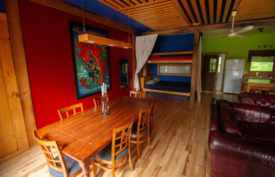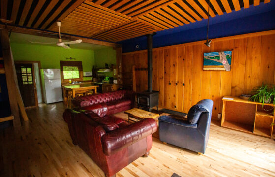 Ce loft est aménagé avec un « coin cuisine » tout équipé et muni d’un îlot central, un « coin salle à manger » avec une table et six chaises, une salle de bain avec douche et toilette ainsi que deux chambres semi fermées. Le quatrième mur de chacune des chambres étant un rideau. Une des chambres est meublée d’un lit double sous lequel il y a un matelas simple. L’autre chambre est équipée de deux lits simples superposés. Vous devez apporter votre literie (sac de couchage ou draps et couvertures, ainsi que vos serviettes). L’habitation est munie d’un chauffage électrique d’appoint et est chauffée avec un poêle à bois situé au centre du loft. Autour de celui-ci, il y a sofa, deux petits fauteuils et d’un récamier, communément appelé « fauteuil de psy ». Entre la mi-octobre et la mi-mai, nous fournissons le bois pour chauffer l’habitation. Ce loft peut être utilisé pour des séjours de création.